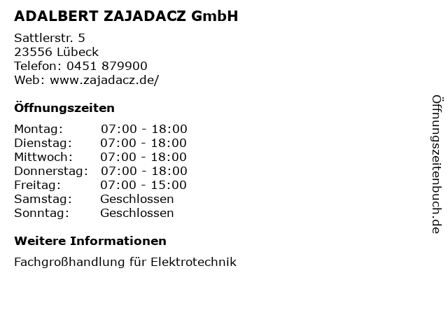 | Öffnungszeiten ADALBERT ZAJADACZ GmbH in Lübeck anzeigen | |