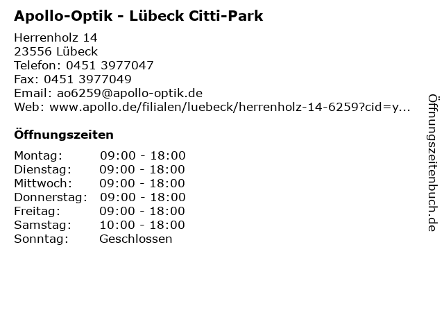 Öffnungszeiten Apollo-Optik - Lübeck Citti-Park