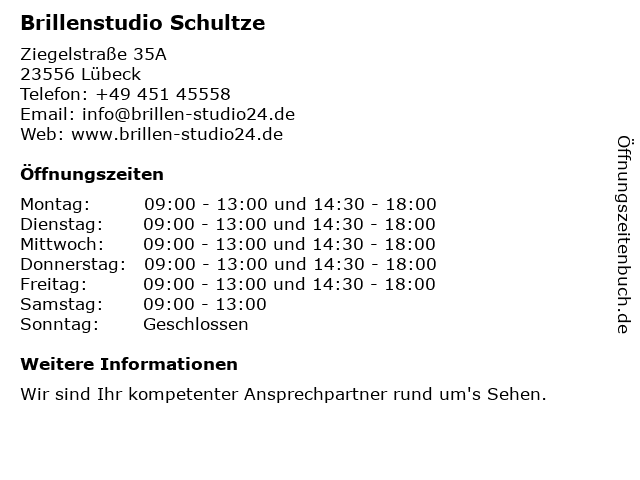 Öffnungszeiten Brillenstudio Schultze in Lübeck anzeigen | |