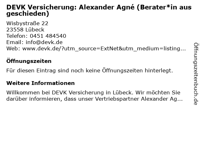 | DEVK Versicherung: Alexander Agné (Berater*in ausgeschieden) anrufen | |