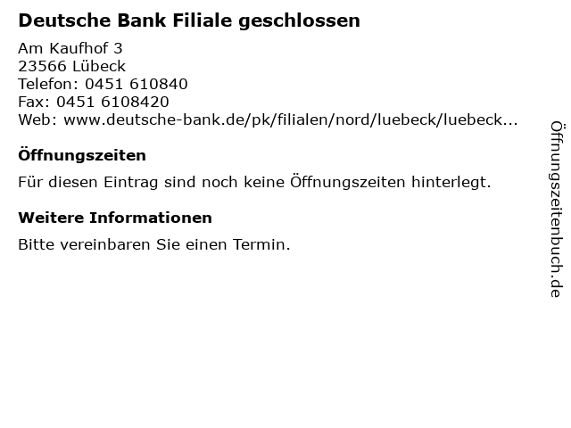 | Deutsche Bank Filiale geschlossen anrufen | |