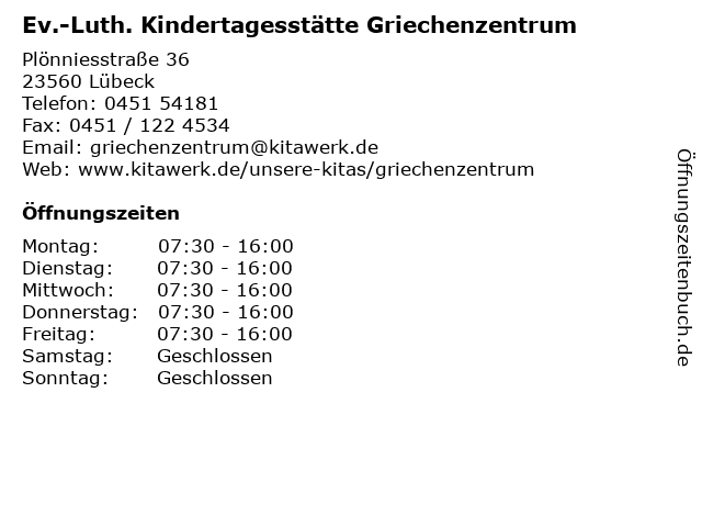 Branchen & Suchbegriffe zu Ev.-Luth. Kindertagesstätte Griechenzentrum:anmeldung, betreuung, ev., griechenzentrum, kinder, kindergarten, kindertagesstätte, kita, luth., nötig |
