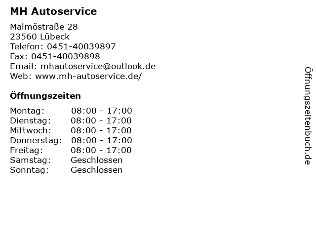| Öffnungszeiten MH Autoservice in Lübeck anzeigen | |