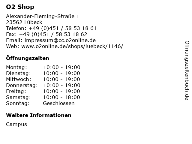 | Öffnungszeiten O2 Shop in Lübeck anzeigen | |
