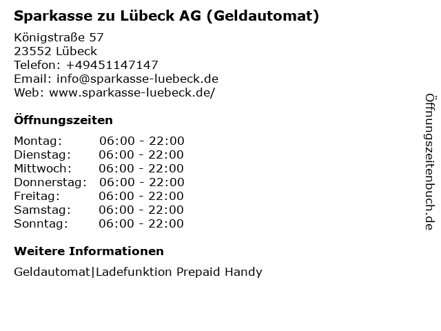 Öffnungszeiten Sparkasse zu Lübeck AG (Geldautomat)
