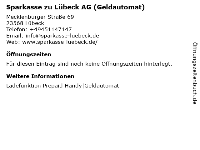 | Sparkasse zu Lübeck AG (Geldautomat) anrufen | |