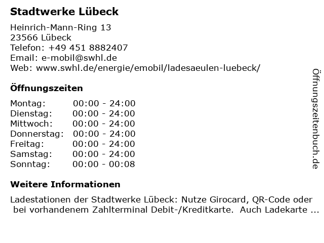| Öffnungszeiten Stadtwerke Lübeck in Lübeck anzeigen | |