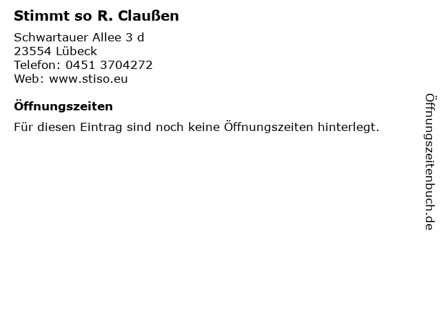 | Adresse Stimmt so R. Claußen in Lübeck anzeigen |