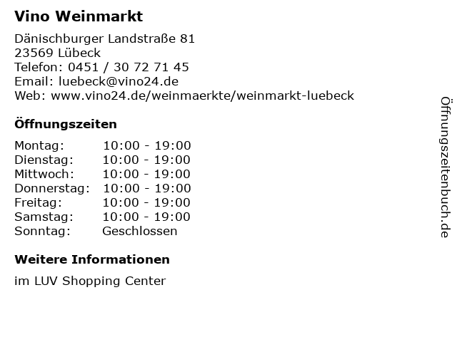 | Öffnungszeiten Vino Weinmarkt in Lübeck anzeigen | |