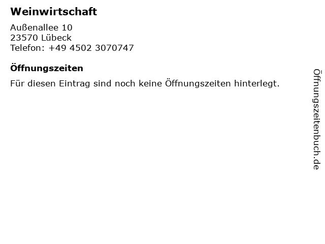 | Öffnungszeiten Weinwirtschaft in Lübeck anzeigen | |