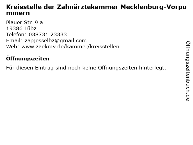 | Kreisstelle der Zahnärztekammer Mecklenburg-Vorpommern anrufen | |