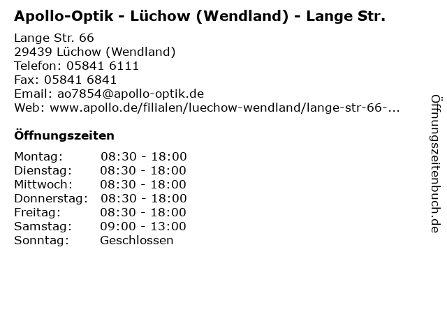 Branchen & Suchbegriffe zu Apollo-Optik - Lüchow (Wendland) - Lange Str.:apollo, augenklinik, lange, optik, optometrie, sonnenbrillengeschäft, str., wendland |