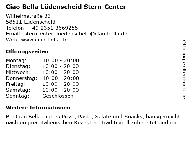 Öffnungszeiten Ciao Bella Lüdenscheid Stern-Center