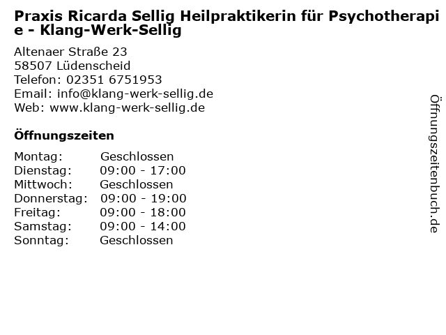 Branchen & Suchbegriffe zu Praxis Ricarda Sellig Heilpraktikerin für Psychotherapie - Klang-Werk-Sellig:allgemeinärzte, heilpraktikerin, klang, lebenscoaching, praxis, psychotherapie, ricarda, sellig, werk |