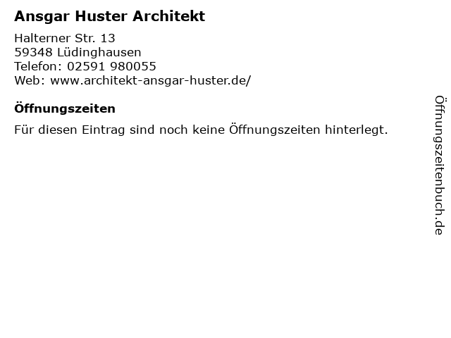 | Öffnungszeiten Ansgar Huster Architekt in Lüdinghausen anzeigen | |