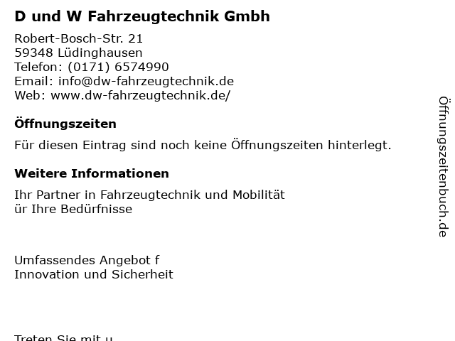 | D und W Fahrzeugtechnik Gmbh anrufen | |