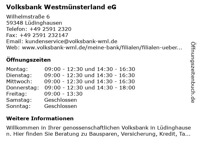 4 Volksbank Westmünsterland eG Volksbank Haltern am See - Sythen (Entfernung: 15,28 km) Schalweg 9, 45721 Haltern am See 5 Volksbank Westmünsterland eG Volksbank Haltern am See (Entfernung: 17,91 km) Raiffeisenplatz 1, 45721 Haltern am See 6 |