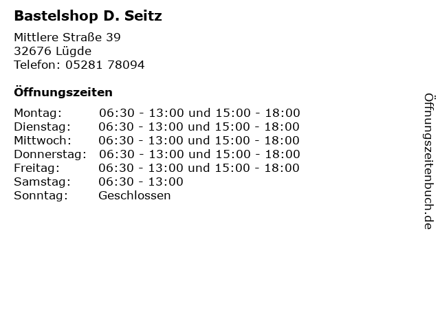 | Öffnungszeiten Bastelshop D. Seitz in Lügde anzeigen | |