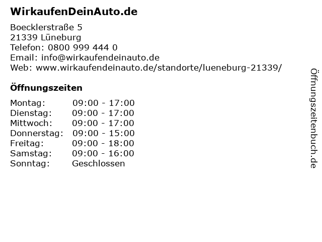 | Öffnungszeiten WirkaufenDeinAuto.de in Lüneburg anzeigen | |