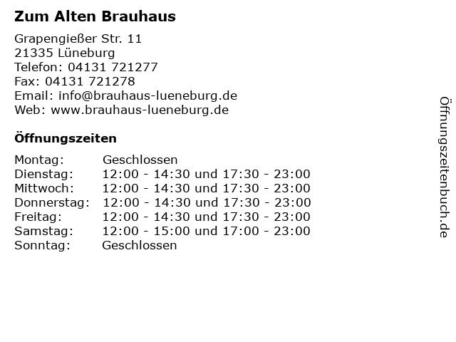 | Öffnungszeiten Zum Alten Brauhaus in Lüneburg anzeigen | |