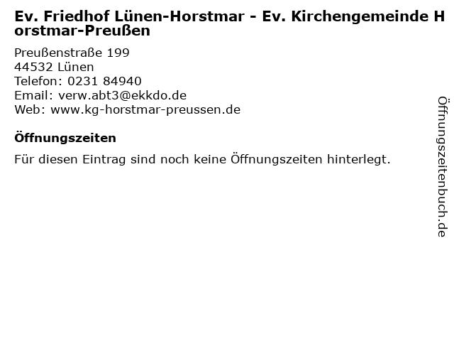 | Ev. Friedhof Lünen-Horstmar - Ev. Kirchengemeinde Horstmar-Preußen anrufen | |