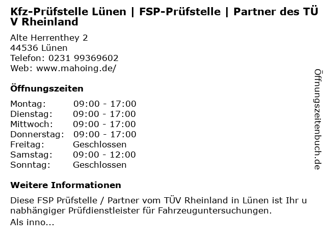 Branchen & Suchbegriffe zu Kfz-Prüfstelle Lünen | FSP-Prüfstelle | Partner des TÜV Rheinland:des, fsp, kfz, partner, prüfstelle, rheinland, tüv |
