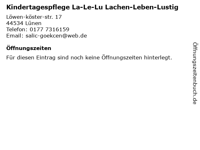 | Kindertagespflege La-Le-Lu Lachen-Leben-Lustig anrufen | |