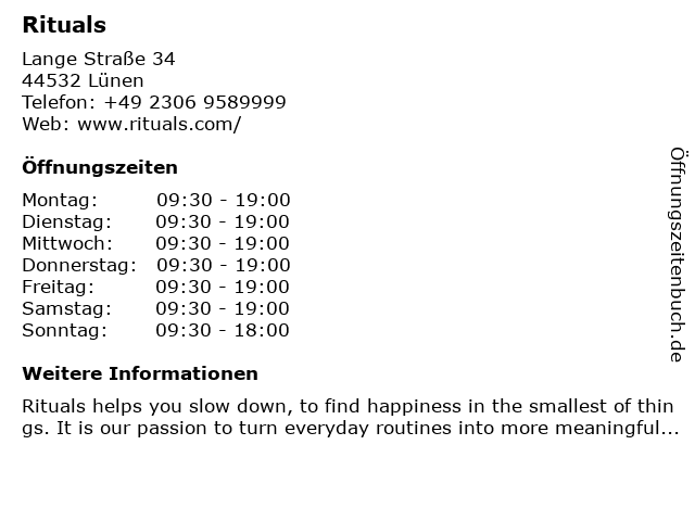 | Telefonnummer Rituals in Lünen (+49 2306 9589999) anrufen | |