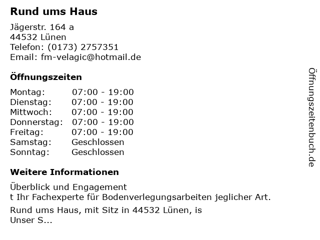 | Öffnungszeiten Rund ums Haus in Lünen anzeigen | |