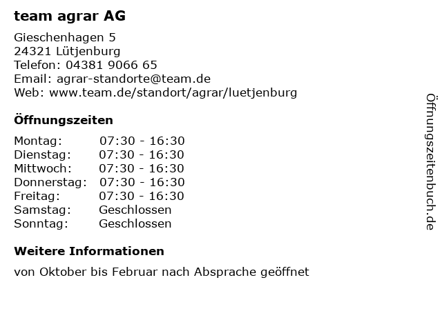 | Öffnungszeiten team agrar AG in Lütjenburg anzeigen | |