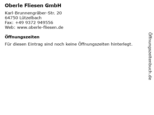 | Öffnungszeiten Oberle Fliesen GmbH in Lützelbach anzeigen | |