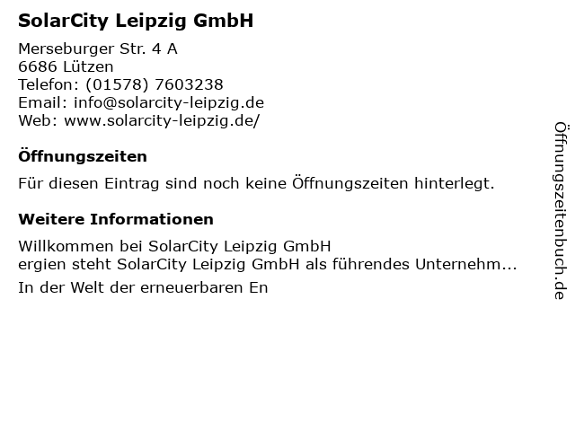 | Adresse SolarCity Leipzig GmbH in Lützen anzeigen |