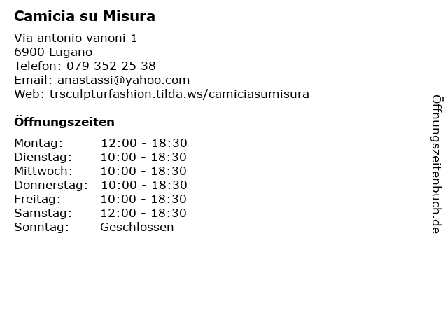 | Öffnungszeiten Camicia su Misura in Lugano anzeigen | |