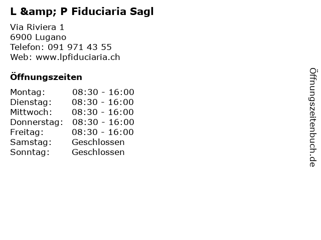 | Öffnungszeiten L & P Fiduciaria Sagl in Lugano anzeigen | |