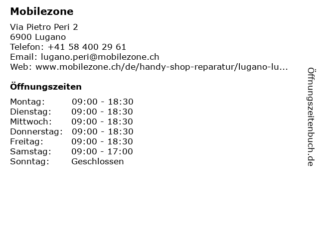 Öffnungszeiten Mobilezone in Lugano anzeigen | |