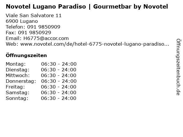 1 Novotel Lugano Paradiso | Restaurant GourmetBar (Entfernung: 0,00 km) Viale San Salvatore 11, 6900 Lugano 6 |