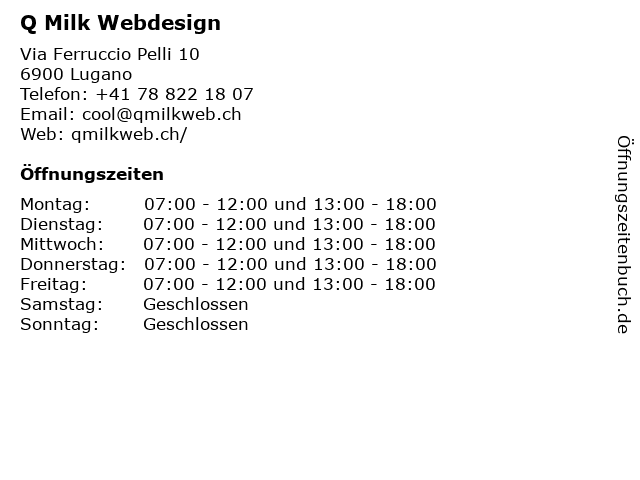 | Öffnungszeiten Q Milk Webdesign in Lugano anzeigen | |