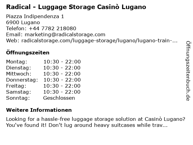 Branchen & Suchbegriffe zu Radical - Luggage Storage Casinò Lugano:casinò, lugano, luggage, luggage storage, luggage storage near me, radical, storage |