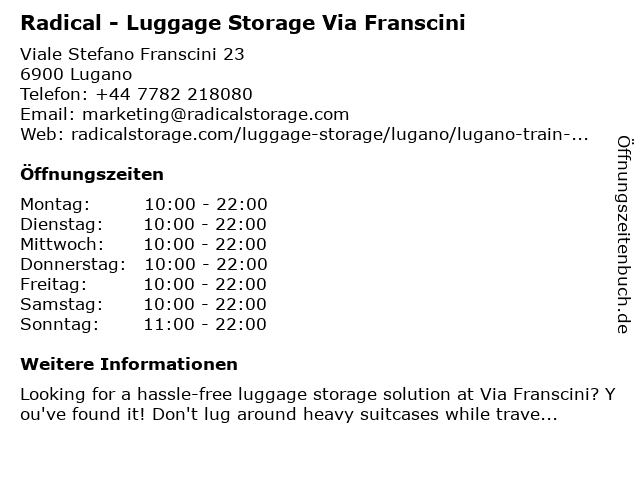 Branchen & Suchbegriffe zu Radical - Luggage Storage Via Franscini:franscini, luggage, luggage storage, luggage storage near me, radical, storage, via |