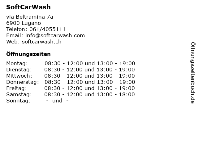 | Öffnungszeiten SoftCarWash in Lugano anzeigen | |