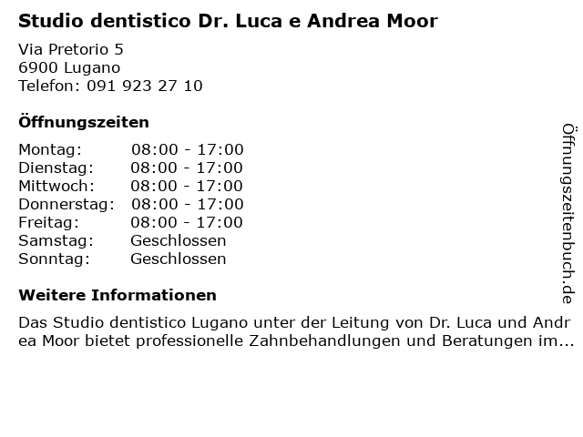 Branchen & Suchbegriffe zu Studio dentistico Dr. Luca e Andrea Moor:andrea, dentalhygieniker, dentistico, dr., kieferorthopädie, luca, moor, studio  |