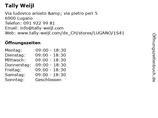 | Öffnungszeiten Tally Weijl in Lugano anzeigen | |