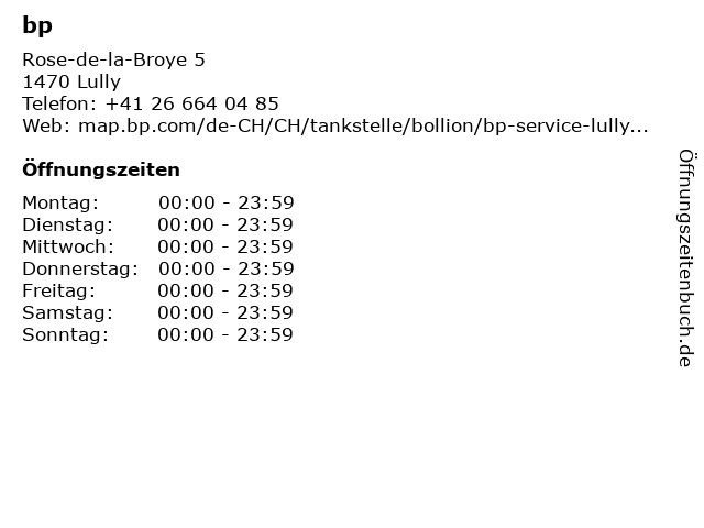 | Telefonnummer bp in Lully (+41 26 664 04 85) anrufen | |
