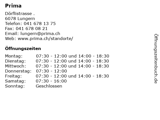 | Öffnungszeiten Prima in Lungern anzeigen | |