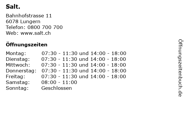 | Öffnungszeiten Salt. in Lungern anzeigen | |