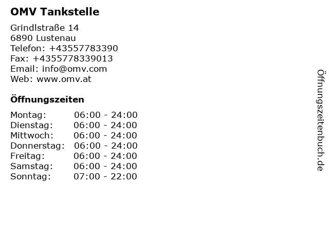 | Öffnungszeiten OMV Tankstelle in Lustenau anzeigen | |