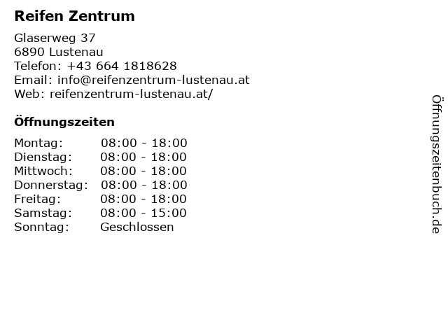 | Öffnungszeiten Reifen Zentrum in Lustenau anzeigen | |