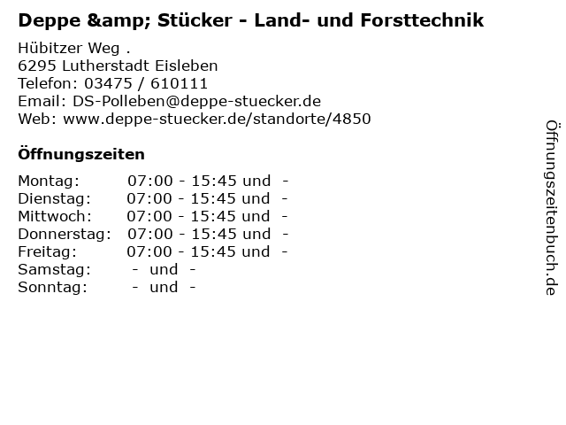 1 Deppe & Stücker - Land- und Forsttechnik (Entfernung: 16,42 km) Dösseler Str. 5, 06193 Wettin-Löbejün 6 Diakoniewerk des Kirchenkreises Mansfelder Land (Entfernung: 7,64 km) Hallesche Str. 38, 06295 Lutherstadt Eisleben |