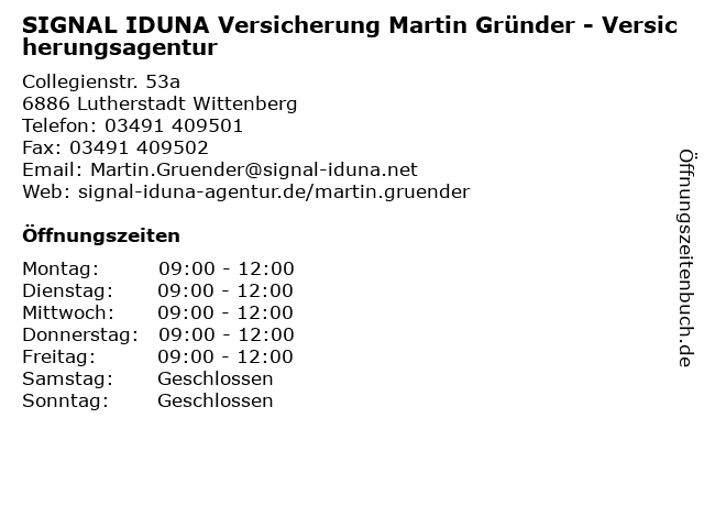 1 SIGNAL IDUNA Versicherung Miriam Möser - Versicherungsagentur (Entfernung: 0,00 km) Collegienstr. 53 a, 06886 Lutherstadt Wittenberg 2 SIGNAL IDUNA Versicherung Thomas Möser - Versicherungsagentur (Entfernung: 0,00 km) Collegienstr. 53 a, 06886 Lutherstadt Wittenberg 3 SIGNAL IDUNA Versicherung Antonia Schmidt - Versicherungsagentur (Entfernung: 0,00 km) Collegienstr. 53a, 06886 Lutherstadt Wittenberg 4 SIGNAL IDUNA Versicherung Laura Hirsch - Versicherungsagentur (Entfernung: 0,53 km) Jüdenstr. 15, 06886 Lutherstadt Wittenberg 5 SIGNAL IDUNA Versicherung Frank Schlüter - Versicherungsagentur (Entfernung: 0,54 km) Jüdenstr. 15, 06886 Lutherstadt Wittenberg 6 Signal Iduna Hauptagentur Janine Fiebig-Merten (Entfernung: 0,87 km) Sternstr. 38 B, 06886 Lutherstadt Wittenberg |