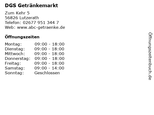 | Öffnungszeiten DGS Getränkemarkt in Lutzerath anzeigen | |